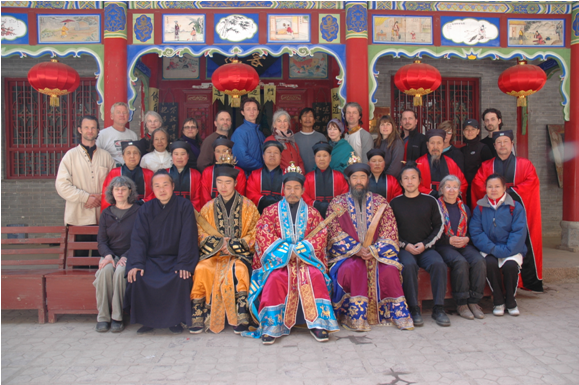 El Abad y monjes taoístas de la Caverna Puerta del Dragón, antiguo templo del Linaje de la Puerta del Dragón, con el Maestro Wu y sus estudiantes. Éste viaje realizado en el 2008 fue la primera vez en la historia que la Caverna Puerta del Dragón daba la bienvenida en su templo a visitantes occidentales – © Master Wu.