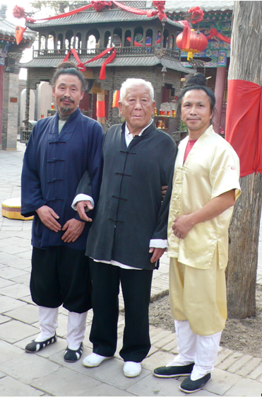 De izquierda a derecha: monje Taoísta Huang QingGui; Gran Maestro de XinYi Zhou ShouRong, maestro del Maestro Wu; Maestro Zhongxian Wu. Año 2010. © Master Wu .